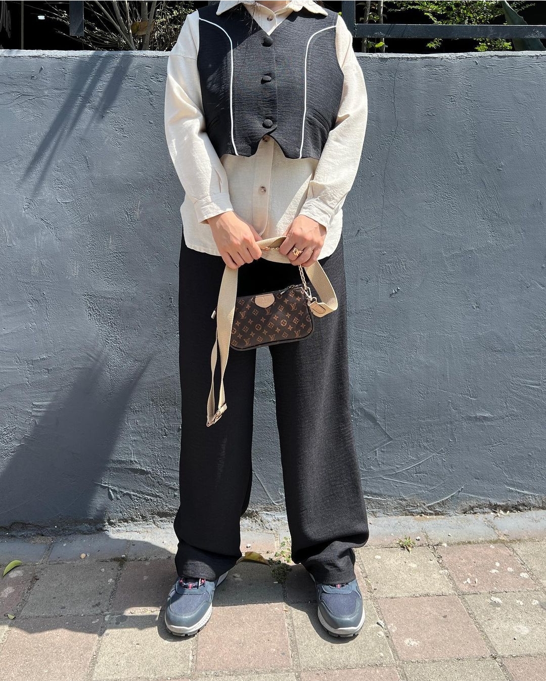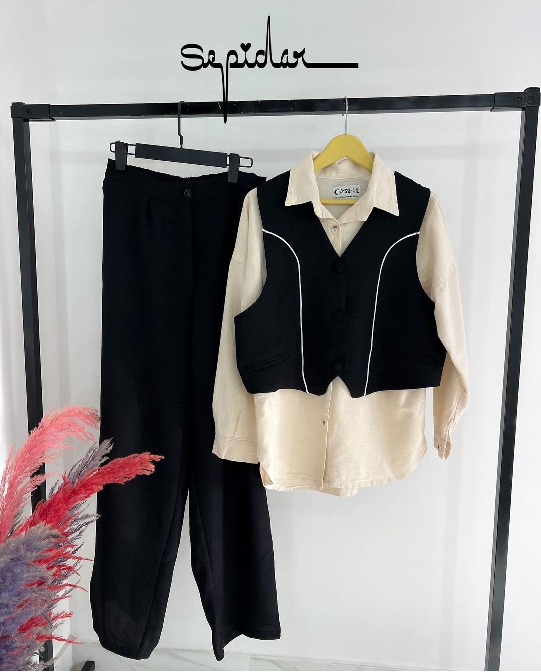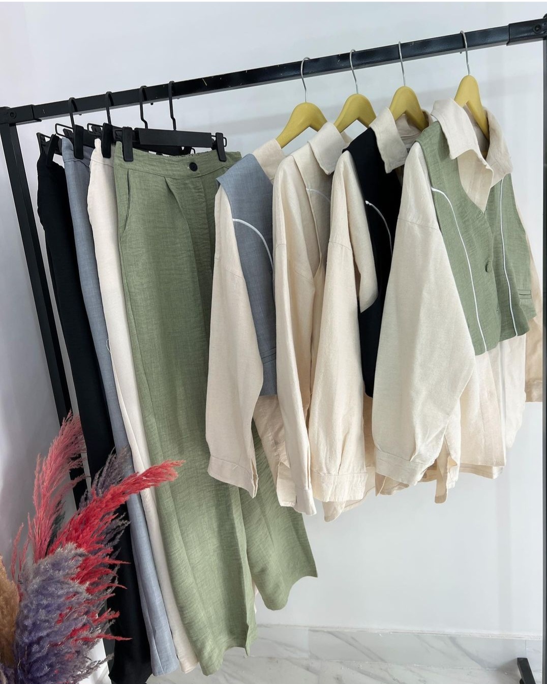 ست سه تیکه شومیز مانتویی و جلیقه شلوار با تن خور عالی ، خنک مناسب فصل